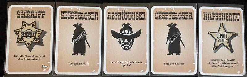 플레이어들은 ‘보안관’, ‘부관’, ‘무법자’, ‘배신자’ 중 하나의 역할을 비밀리에 부여받고, 오직 자신의 역할에 해당하는 승리 목표를 달성하기 위해 싸우게 됩니다.