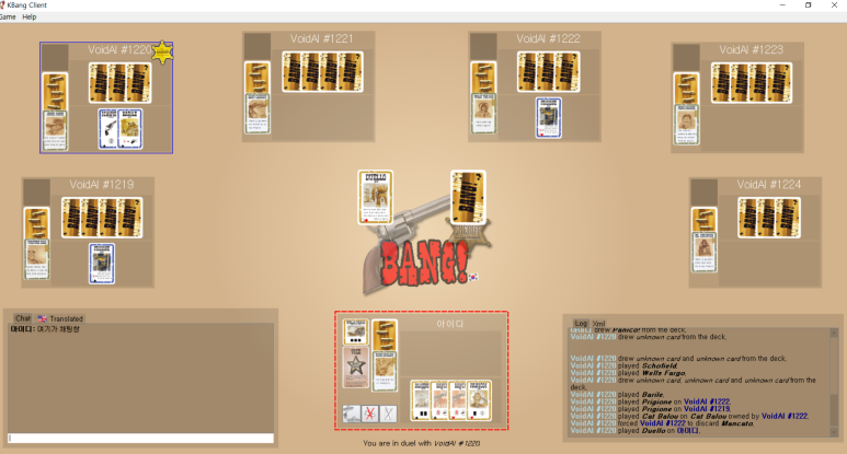 뱅 보드게임은 카드 효과를 통해 진행됩니다.
