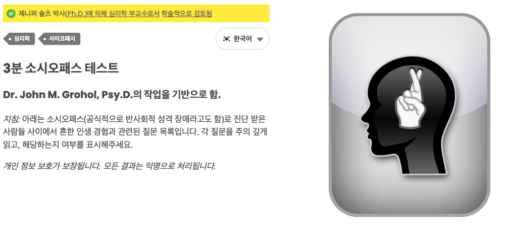 온라인 소시오패스 테스트는 어디까지나 참고용입니다.