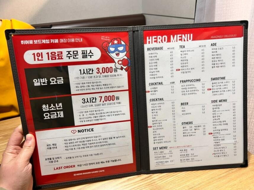 히어로 보드게임카페 메뉴는 일반 카페나 전문 음식점과 견주어도 손색이 없을 만큼 다채롭습니다.